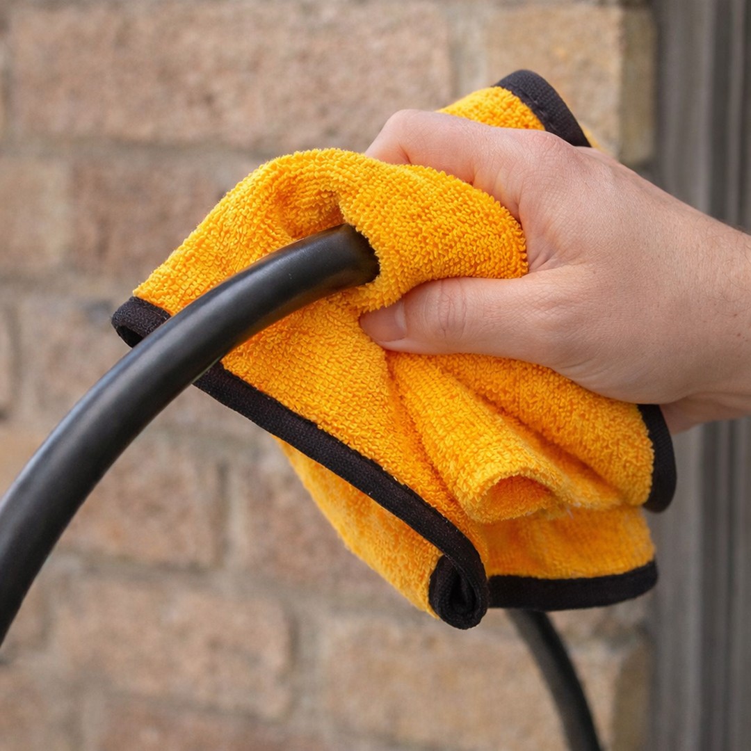 Premium microvezel reinigingsdoek in gouden kleur is ideaal voor het schoonmaken van EV-laadkabels. De zachte vezels verwijderen vuil en aanslag zonder krassen, zodat je laadkabel netjes en goed onderhouden blijft.
